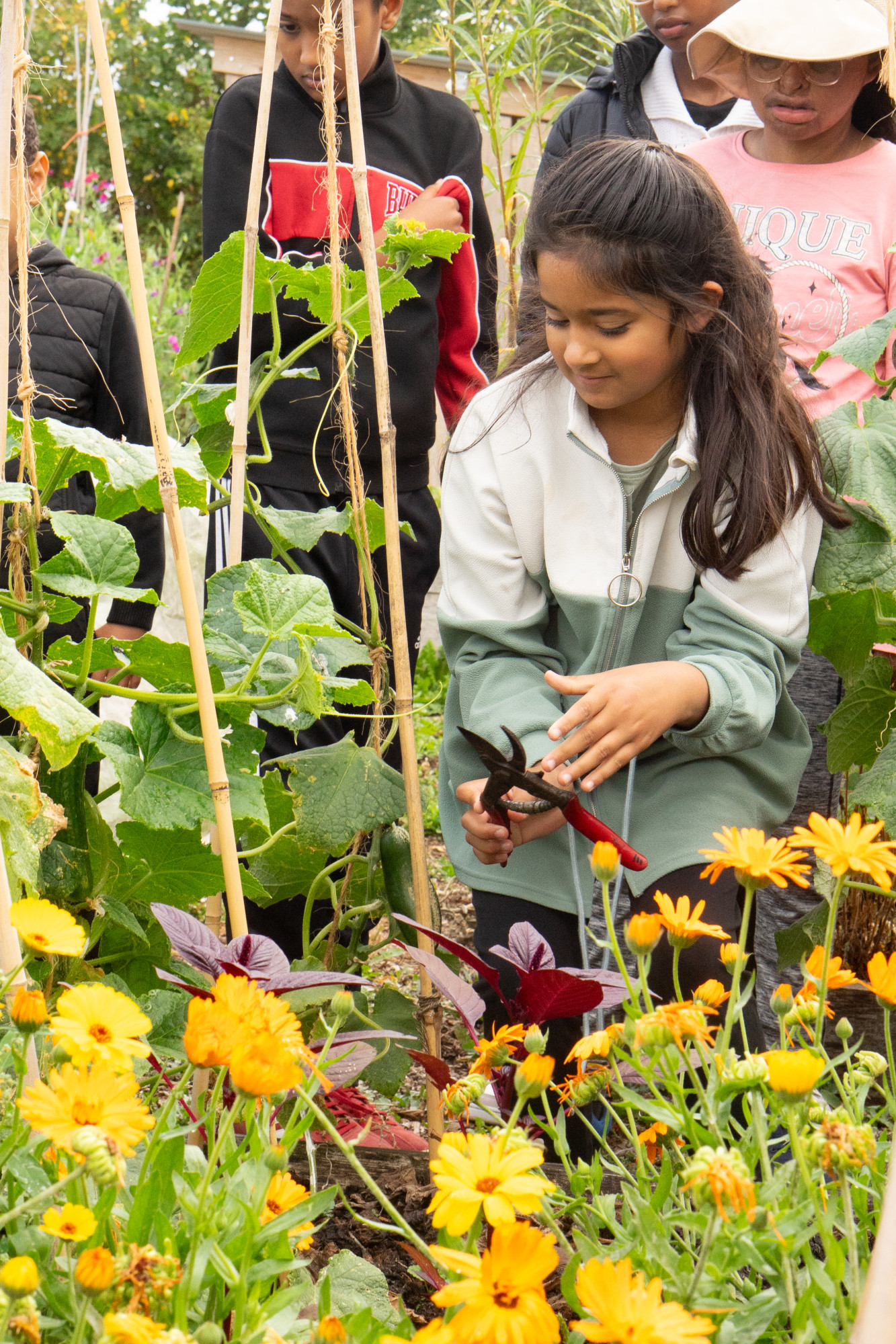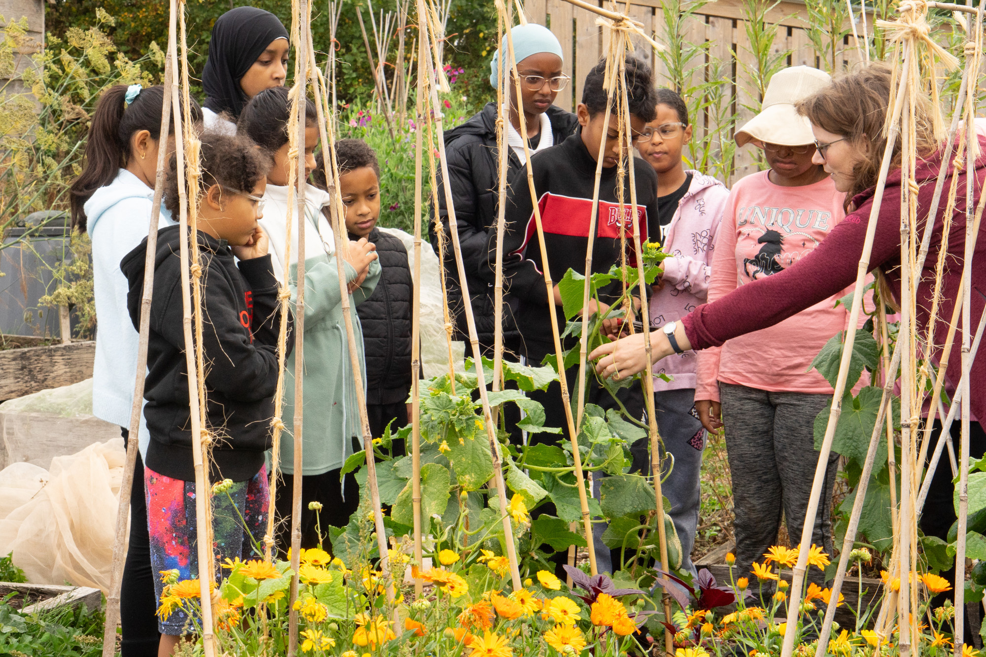 Our days began with a picking tour of the farm, harvesting cucumbers from seven-foot-tall plants, vibrant beetroot, tomatoes in many colours, and an endless variety of apples. We also gathered fresh herbs and took time to search for insects and pollinators. The farm team shared their passion for nature and biodiversity, talking with the groups about growing without chemicals and protecting the environment.